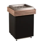 Moc 12 kW zapewnia szybkie nagrzewanie i stabilne utrzymanie temperatury w saunach o średniej kubaturze. Duża pojemność na kamienie pozwala na uzyskanie bogatej produkcji pary podczas polewania wodą.