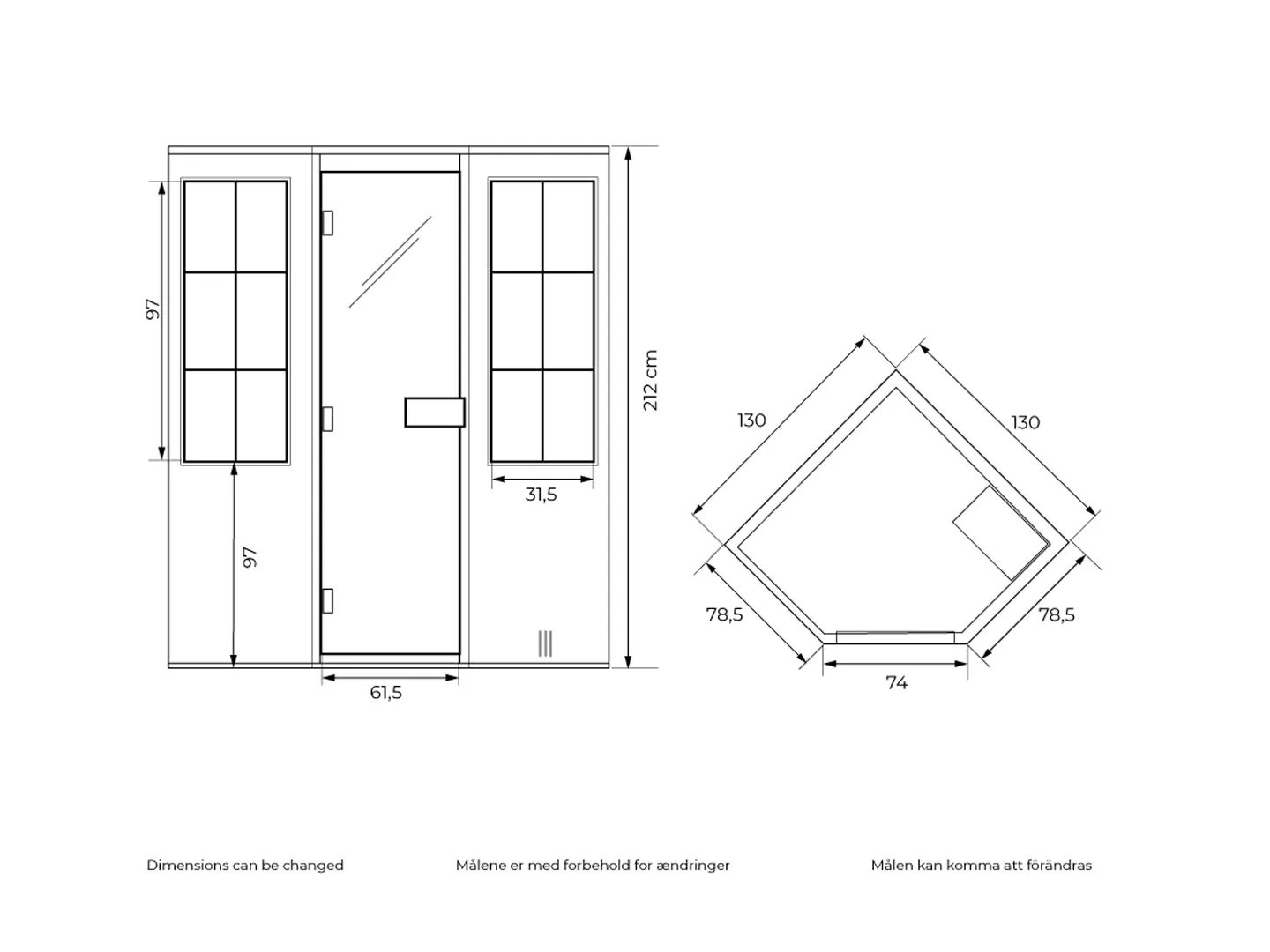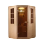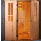 Stavanger to elegancka narożna sauna dla 3 osób z dużymi oknami, szklanymi drzwiami i kompletnym wyposażeniem. Wykonana z drewna jodłowego z certyfikatem FSC i dostarczana w zestawie do samodzielnego montażu.