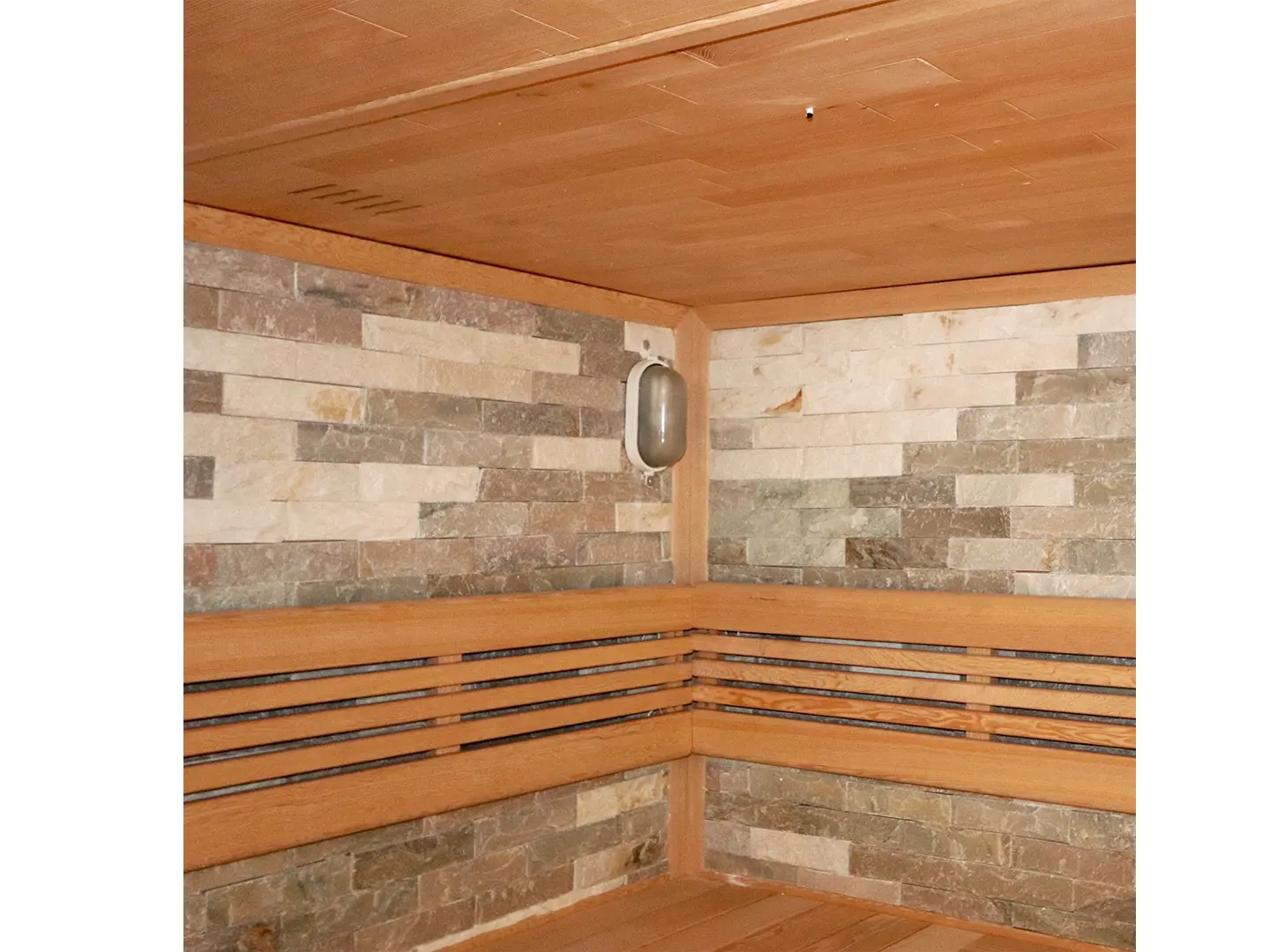 Tradycyjna sauna dla 5-6 osób z oświetleniem pośrednim i „gwieździstym niebem”, które można indywidualnie włączać/wyłączać i regulować za pomocą dwóch pilotów. Oświetlenie sufitowe ma kształt „gwieździstego nieba” i można je regulować w wielu kolorach.